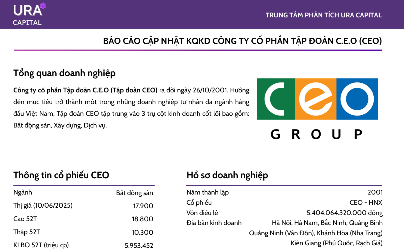 + Tham vọng lấn sân sang mảng bất động sản khu công nghiệp thông qua việc góp vốn thành lập CTCP Phát triển Khu công nghiệp C.E.O (CEO IP).