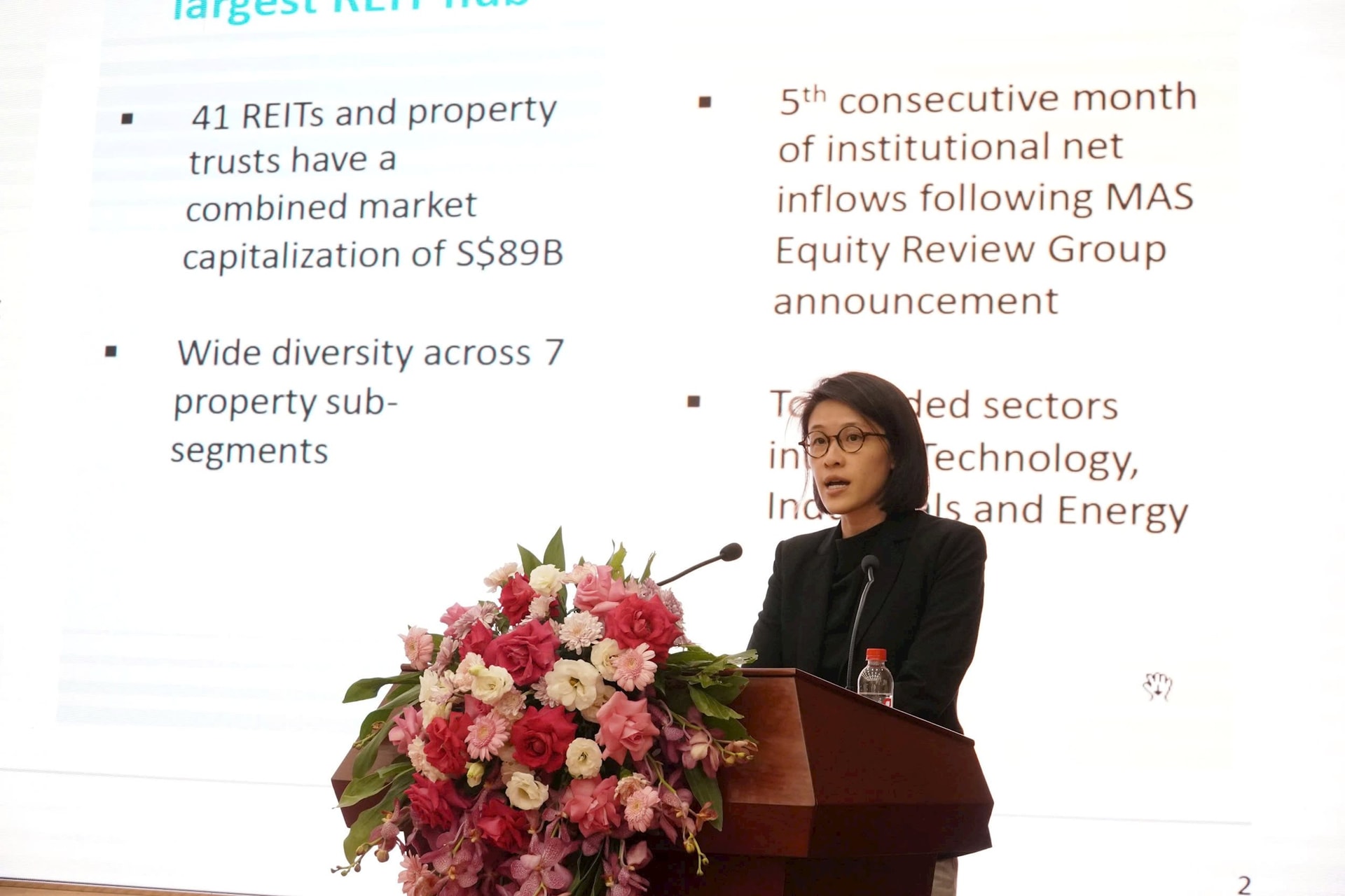 Bà Bernice Tan - Phó Chủ tịch Sở GDCK Singapore trình bày tại Hội thảo