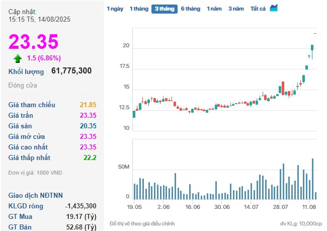 Với đà tăng “bốc đầu” trên, hiện vốn hóa thị trường của CII vượt mức 14.592 tỷ đồng.