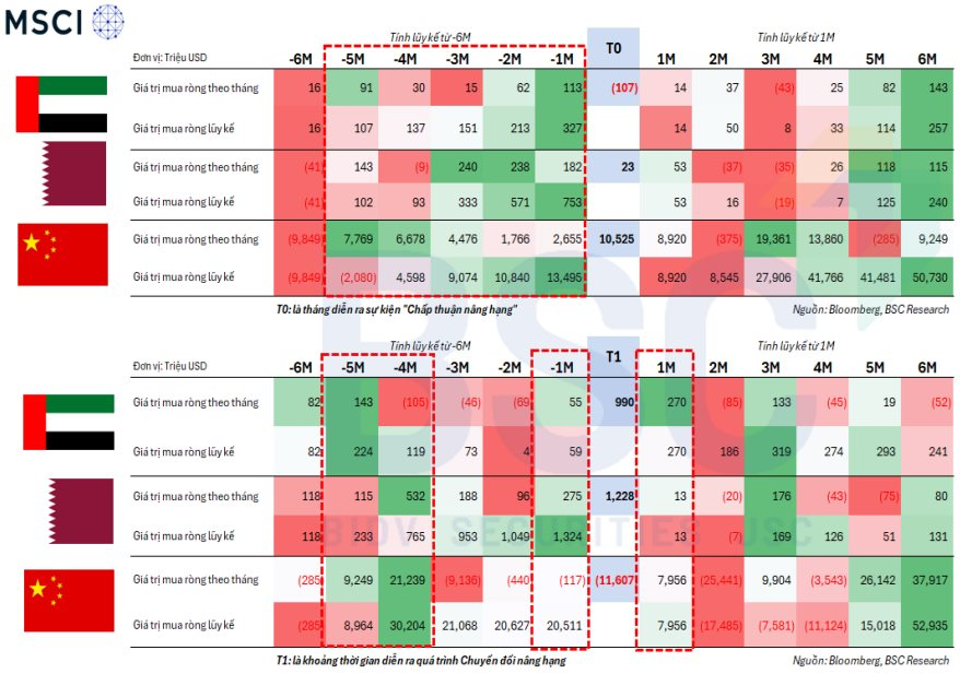 Thống kê từ số liệu quá khứ, Chứng khoán BIDV (BSC) đã chỉ ra đặc điểm đáng chú ý của diễn biến dòng vốn ngoại tại một số thị trường châu Á trước thềm nâng hạng. Đó là việc NĐTNN thường tham gia vào thị trường trước khi thông tin nâng hạng được công bố một khoảng thời gian dài, thay vì chờ đợi đến thời điểm công bố.