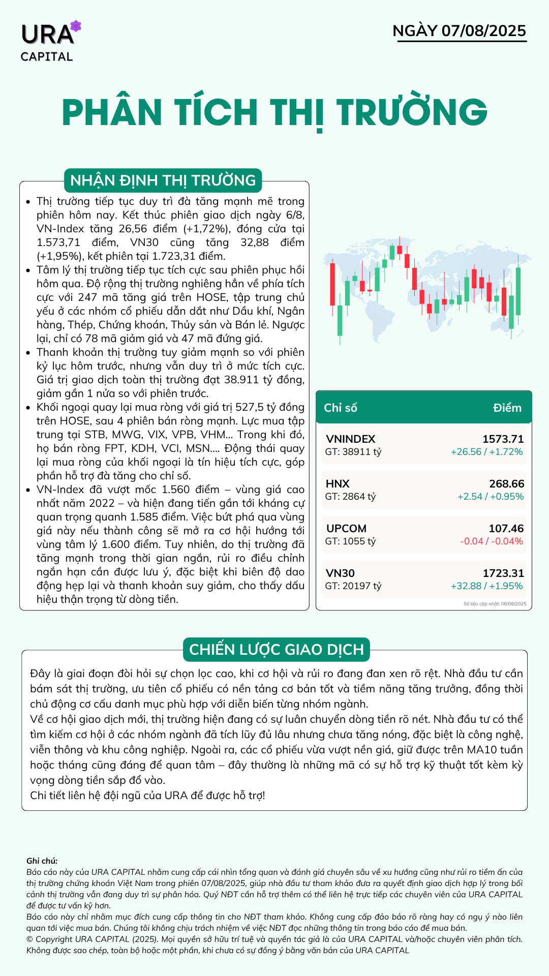 Phân tích thị trường 07/08/2025 Thứ Năm, 07/08/2025 uracapital Chia sẻ bài viết: Menu Trang chủ Tin tức Báo cáo & Phân tích Báo cáo Phân tích Dịch vụ Tư vấn đầu tư Đào tạo kiến thức đầu tư Quản lý danh mục đầu tư Tư vấn kế hoạch tài chính Kiến thức đầu tư Kiến thức cơ bản Kiến thức nâng cao Phân tích kỹ thuật Phân tích kỹ thuật Phân tích cơ bản Hỗ trợ Hướng dẫn giao dịch Liên hệ Về Ura Capital Tin tức nổi bật