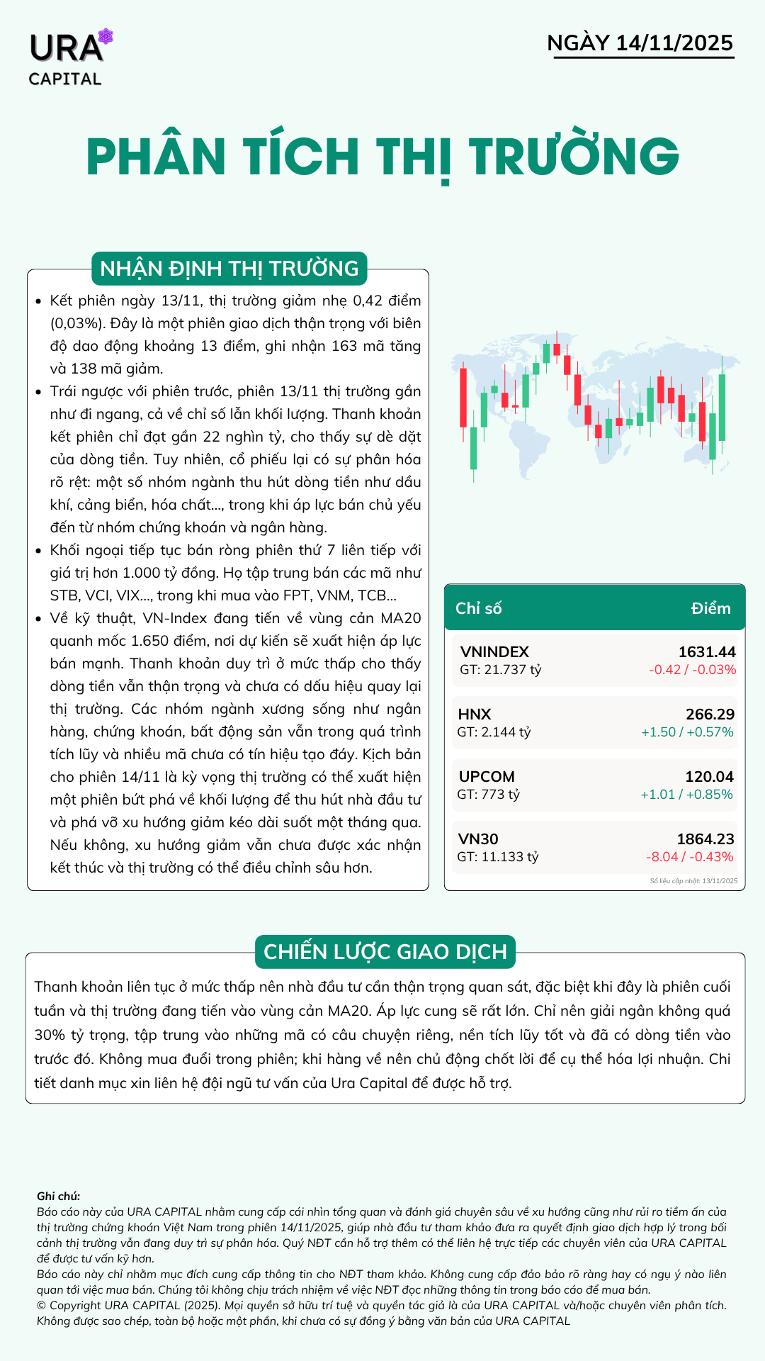 Phân tích thị trường 14/11/2025 Thứ Sáu, 14/11/2025 uracapital Chia sẻ bài viết: Menu Trang chủ Tin tức Báo cáo & Phân tích Báo cáo Phân tích Dịch vụ Tư vấn đầu tư Đào tạo kiến thức đầu tư Quản lý danh mục đầu tư Tư vấn kế hoạch tài chính Kiến thức đầu tư Kiến thức cơ bản Kiến thức nâng cao Phân tích kỹ thuật Phân tích kỹ thuật Phân tích cơ bản Hỗ trợ Hướng dẫn giao dịch Liên hệ Về Ura Capital Tin tức nổi bật