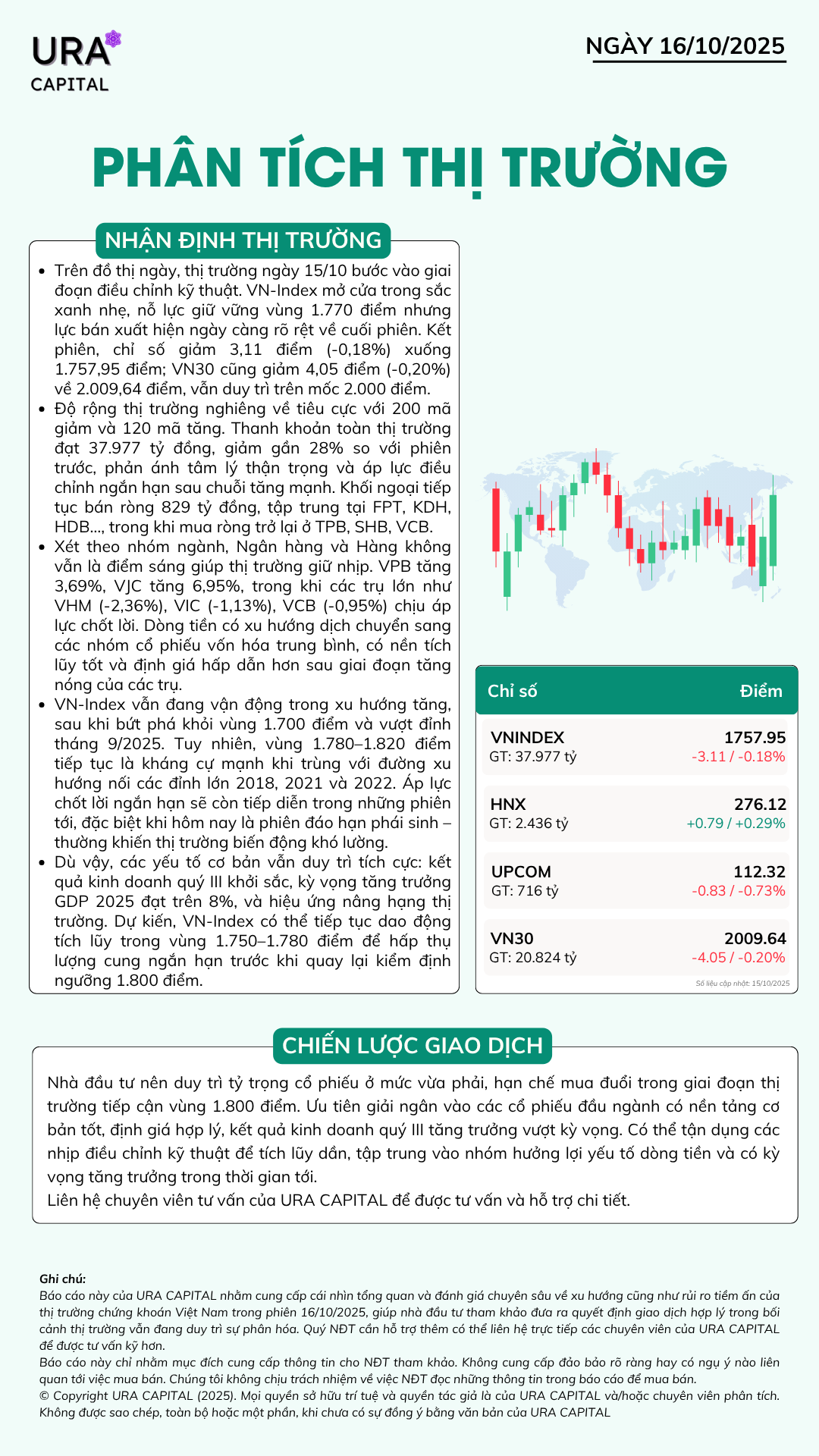 Phân tích thị trường 16/10/2025 Thứ Năm, 16/10/2025 uracapital Chia sẻ bài viết: Menu Trang chủ Tin tức Báo cáo & Phân tích Báo cáo Phân tích Dịch vụ Tư vấn đầu tư Đào tạo kiến thức đầu tư Quản lý danh mục đầu tư Tư vấn kế hoạch tài chính Kiến thức đầu tư Kiến thức cơ bản Kiến thức nâng cao Phân tích kỹ thuật Phân tích kỹ thuật Phân tích cơ bản Hỗ trợ Hướng dẫn giao dịch Liên hệ Về Ura Capital Tin tức nổi bật