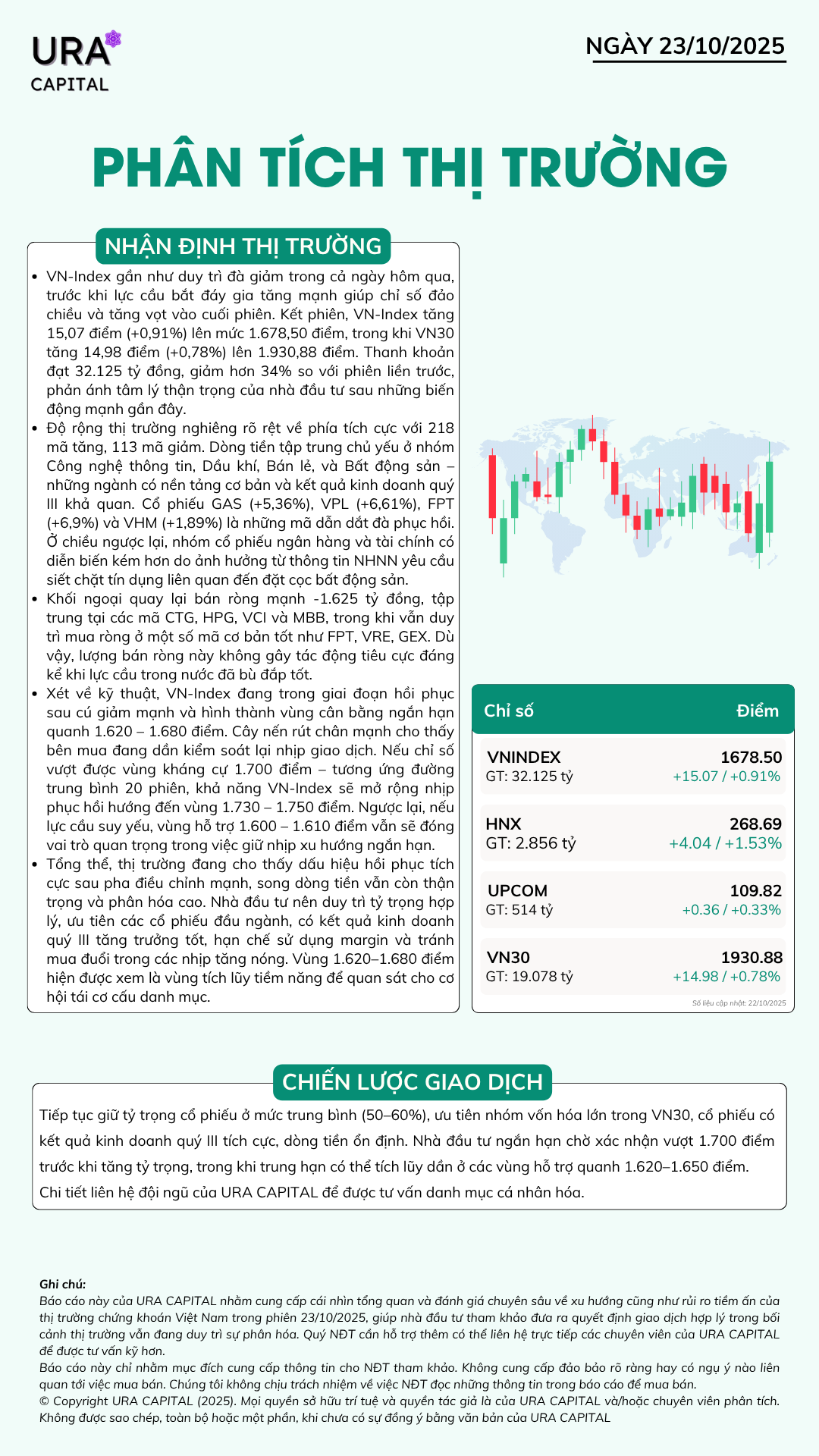 Phân tích thị trường 23/10/2025 Thứ Năm, 23/10/2025 uracapital Chia sẻ bài viết: Menu Trang chủ Tin tức Báo cáo & Phân tích Báo cáo Phân tích Dịch vụ Tư vấn đầu tư Đào tạo kiến thức đầu tư Quản lý danh mục đầu tư Tư vấn kế hoạch tài chính Kiến thức đầu tư Kiến thức cơ bản Kiến thức nâng cao Phân tích kỹ thuật Phân tích kỹ thuật Phân tích cơ bản Hỗ trợ Hướng dẫn giao dịch Liên hệ Về Ura Capital Tin tức nổi bật