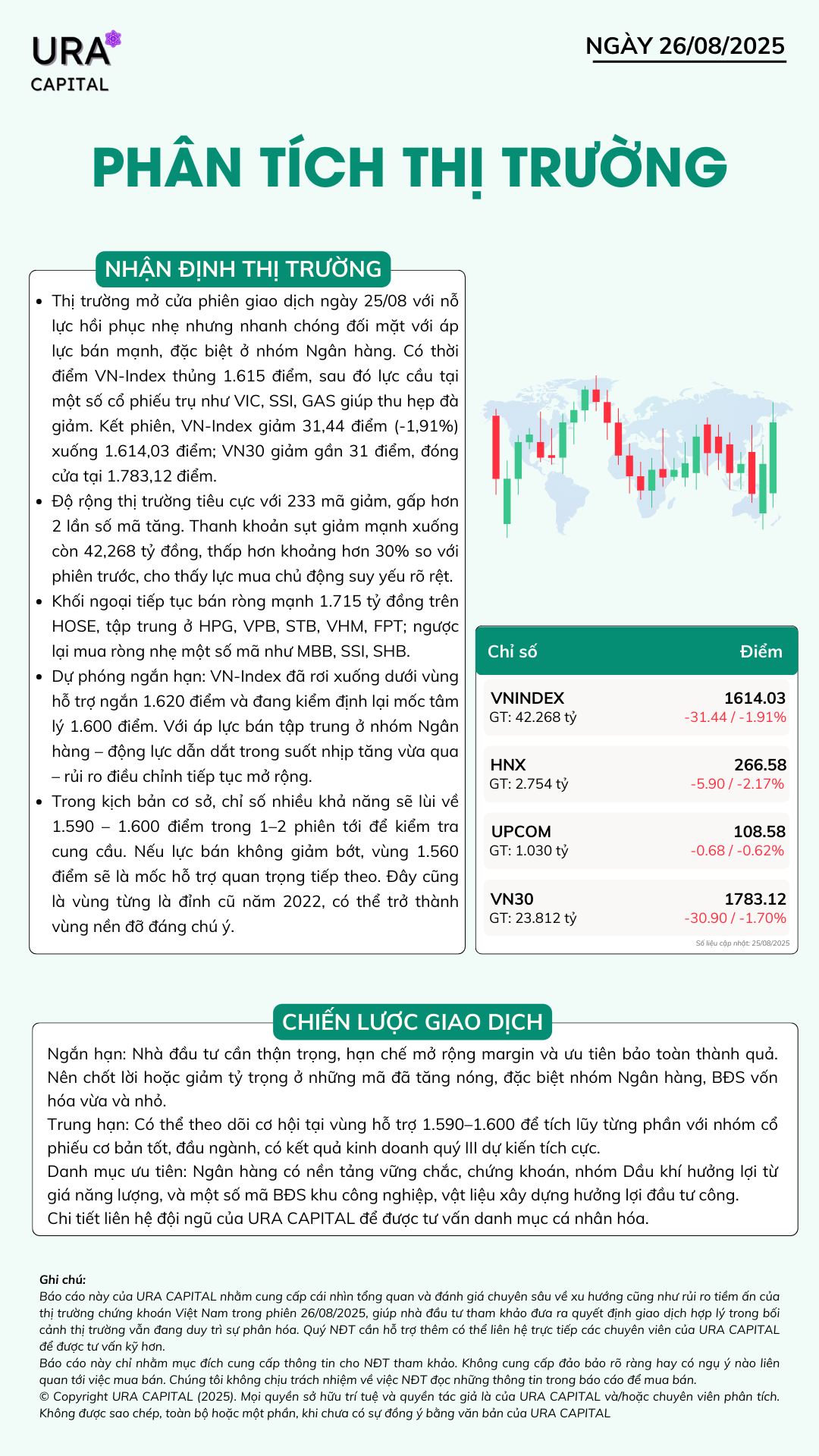Phân tích thị trường 26/08/2025 Thứ Ba, 26/08/2025 uracapital Chia sẻ bài viết: Menu Trang chủ Tin tức Báo cáo & Phân tích Báo cáo Phân tích Dịch vụ Tư vấn đầu tư Đào tạo kiến thức đầu tư Quản lý danh mục đầu tư Tư vấn kế hoạch tài chính Kiến thức đầu tư Kiến thức cơ bản Kiến thức nâng cao Phân tích kỹ thuật Phân tích kỹ thuật Phân tích cơ bản Hỗ trợ Hướng dẫn giao dịch Liên hệ Về Ura Capital Tin tức nổi bật