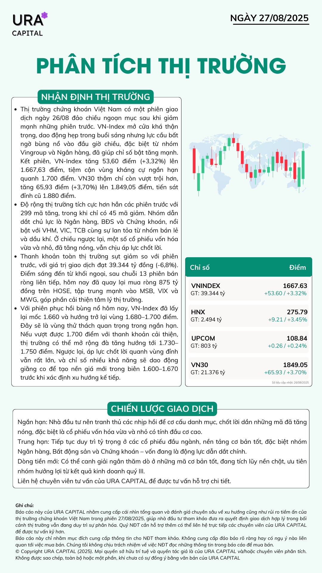 Phân tích thị trường 27/08/2025 Thứ Tư, 27/08/2025 uracapital Chia sẻ bài viết: Menu Trang chủ Tin tức Báo cáo & Phân tích Báo cáo Phân tích Dịch vụ Tư vấn đầu tư Đào tạo kiến thức đầu tư Quản lý danh mục đầu tư Tư vấn kế hoạch tài chính Kiến thức đầu tư Kiến thức cơ bản Kiến thức nâng cao Phân tích kỹ thuật Phân tích kỹ thuật Phân tích cơ bản Hỗ trợ Hướng dẫn giao dịch Liên hệ Về Ura Capital Tin tức nổi bật