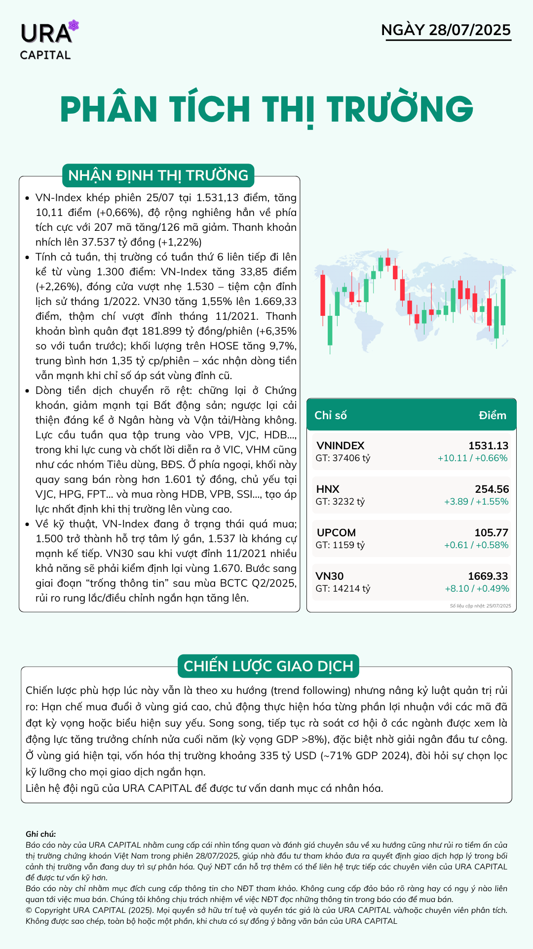 Phân tích thị trường 28/07/2025 Thứ Hai, 28/07/2025 uracapital Chia sẻ bài viết: Menu Trang chủ Tin tức Báo cáo & Phân tích Báo cáo Phân tích Dịch vụ Tư vấn đầu tư Đào tạo kiến thức đầu tư Quản lý danh mục đầu tư Tư vấn kế hoạch tài chính Kiến thức đầu tư Kiến thức cơ bản Kiến thức nâng cao Phân tích kỹ thuật Phân tích kỹ thuật Phân tích cơ bản Hỗ trợ Hướng dẫn giao dịch Liên hệ Về Ura Capital Tin tức nổi bật