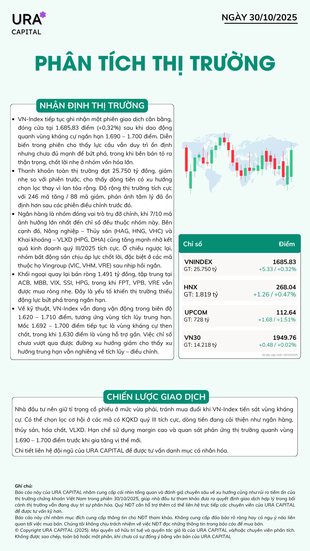 Phân tích thị trường 30/10/2025 Thứ Năm, 30/10/2025 uracapital Chia sẻ bài viết: Menu Trang chủ Tin tức Báo cáo & Phân tích Báo cáo Phân tích Dịch vụ Tư vấn đầu tư Đào tạo kiến thức đầu tư Quản lý danh mục đầu tư Tư vấn kế hoạch tài chính Kiến thức đầu tư Kiến thức cơ bản Kiến thức nâng cao Phân tích kỹ thuật Phân tích kỹ thuật Phân tích cơ bản Hỗ trợ Hướng dẫn giao dịch Liên hệ Về Ura Capital Tin tức nổi bật