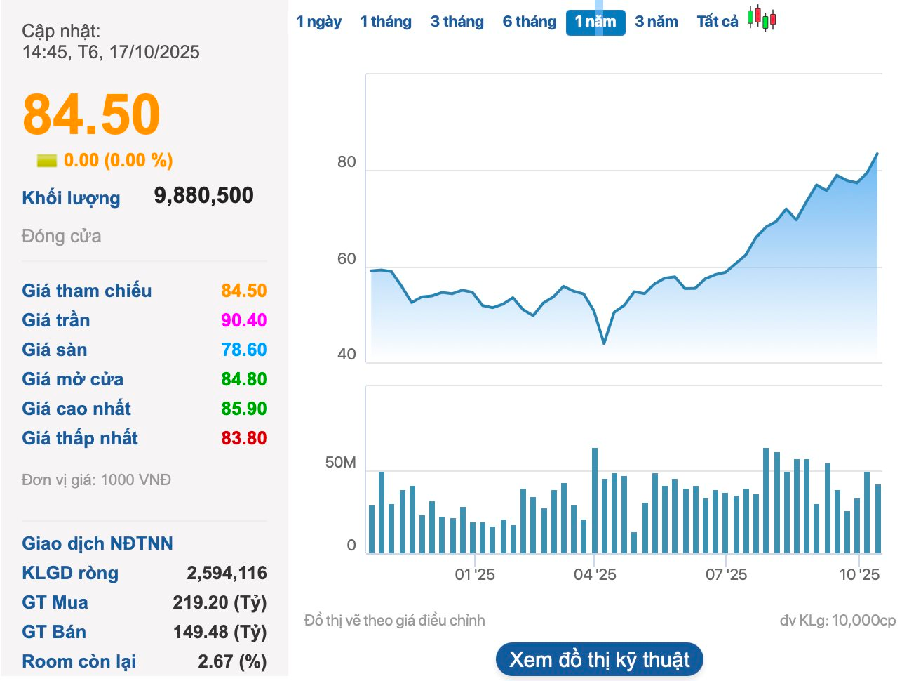 Đáng chú ý, giá mua lại tối thiểu là 10.000 đồng/cổ phiếu, tối đa là 200.000 đồng/cổ phiếu và theo giá thị trường tại thời điểm giao dịch, bảo đảm tuân thủ quy định. Như vậy, tổng số tiền tối đa dự kiến chi là 2.000 tỷ đồng.