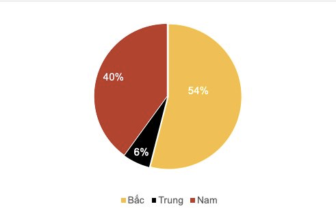 Miền Bắc tiếp tục là điểm đến hàng đầu, chiếm 54% tổng vốn FDI và hơn 380 dự án. Miền Trung tăng gấp đôi thị phần từ 3% lên 6% so với cùng kỳ 2024, nhờ thu hút các tỉnh chi phí thấp và hệ thống logistics cải thiện.