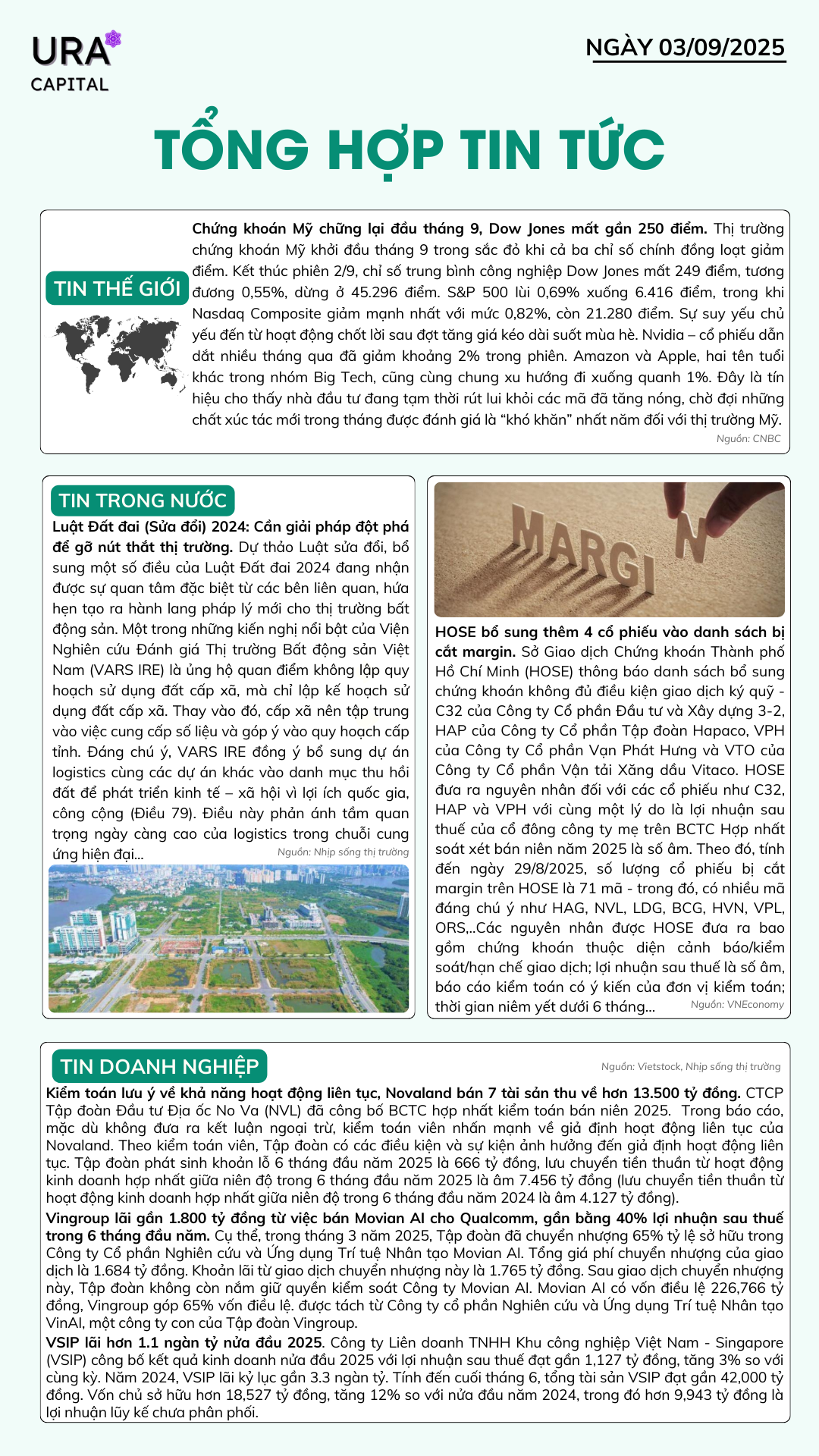 Tổng hợp tin tức 03/09/2025 Thứ Tư, 03/09/2025 uracapital Chia sẻ bài viết: Menu Trang chủ Tin tức Báo cáo & Phân tích Báo cáo Phân tích Dịch vụ Tư vấn đầu tư Đào tạo kiến thức đầu tư Quản lý danh mục đầu tư Tư vấn kế hoạch tài chính Kiến thức đầu tư Kiến thức cơ bản Kiến thức nâng cao Phân tích kỹ thuật Phân tích kỹ thuật Phân tích cơ bản Hỗ trợ Hướng dẫn giao dịch Liên hệ Về Ura Capital Tin tức nổi bật