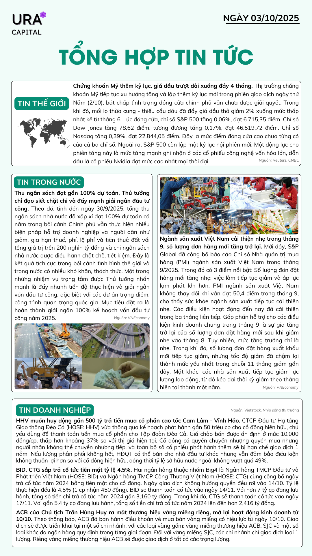 Tổng hợp tin tức 03/10/2025 Thứ Sáu, 03/10/2025 uracapital Chia sẻ bài viết: Menu Trang chủ Tin tức Báo cáo & Phân tích Báo cáo Phân tích Dịch vụ Tư vấn đầu tư Đào tạo kiến thức đầu tư Quản lý danh mục đầu tư Tư vấn kế hoạch tài chính Kiến thức đầu tư Kiến thức cơ bản Kiến thức nâng cao Phân tích kỹ thuật Phân tích kỹ thuật Phân tích cơ bản Hỗ trợ Hướng dẫn giao dịch Liên hệ Về Ura Capital Tin tức nổi bật