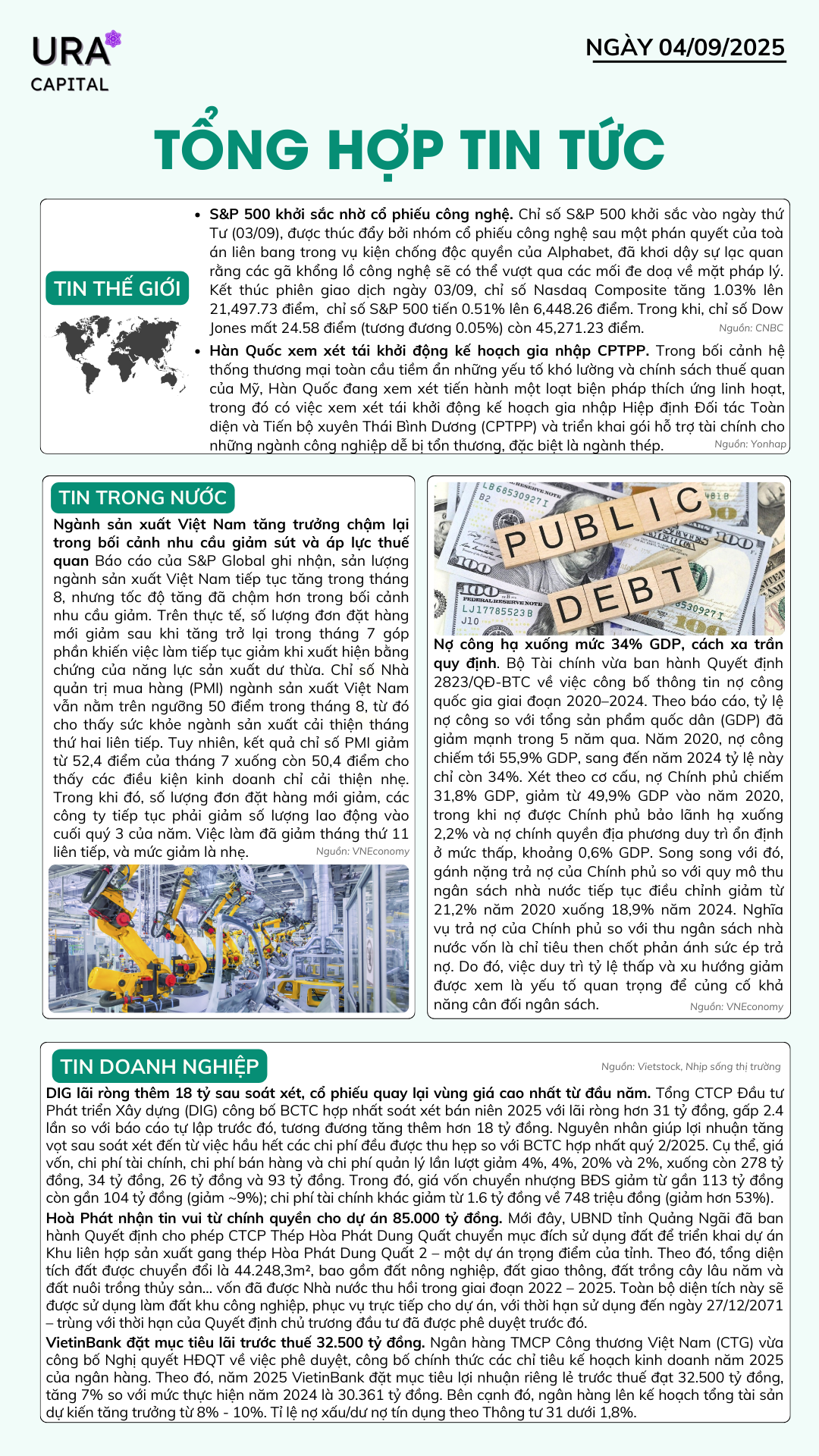 Tổng hợp tin tức 04/09/2025 Thứ Năm, 04/09/2025 uracapital Chia sẻ bài viết: Menu Trang chủ Tin tức Báo cáo & Phân tích Báo cáo Phân tích Dịch vụ Tư vấn đầu tư Đào tạo kiến thức đầu tư Quản lý danh mục đầu tư Tư vấn kế hoạch tài chính Kiến thức đầu tư Kiến thức cơ bản Kiến thức nâng cao Phân tích kỹ thuật Phân tích kỹ thuật Phân tích cơ bản Hỗ trợ Hướng dẫn giao dịch Liên hệ Về Ura Capital Tin tức nổi bật
