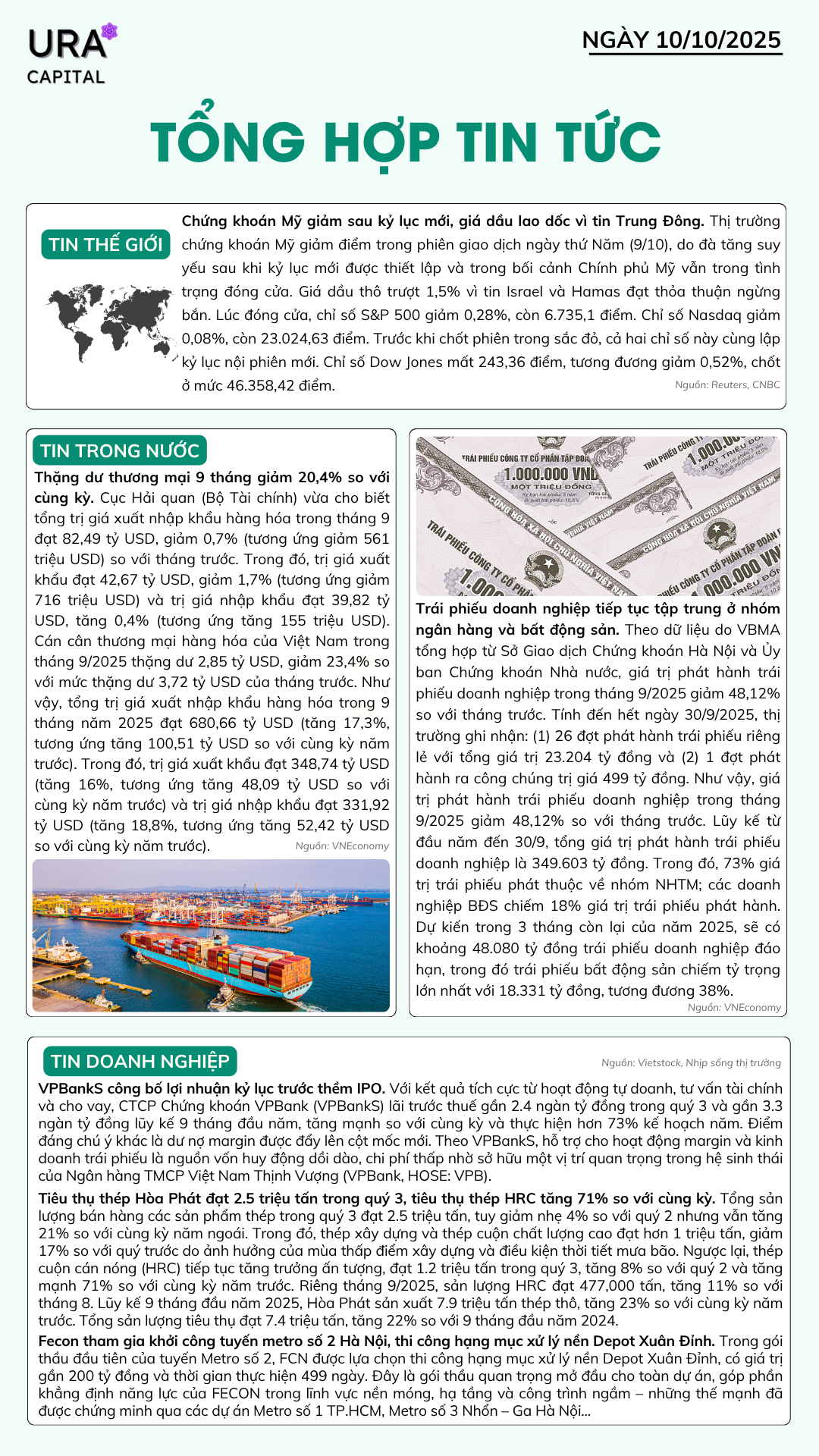 Tổng hợp tin tức 10/10/2025 Thứ Sáu, 10/10/2025 uracapital Chia sẻ bài viết: Menu Trang chủ Tin tức Báo cáo & Phân tích Báo cáo Phân tích Dịch vụ Tư vấn đầu tư Đào tạo kiến thức đầu tư Quản lý danh mục đầu tư Tư vấn kế hoạch tài chính Kiến thức đầu tư Kiến thức cơ bản Kiến thức nâng cao Phân tích kỹ thuật Phân tích kỹ thuật Phân tích cơ bản Hỗ trợ Hướng dẫn giao dịch Liên hệ Về Ura Capital Tin tức nổi bật