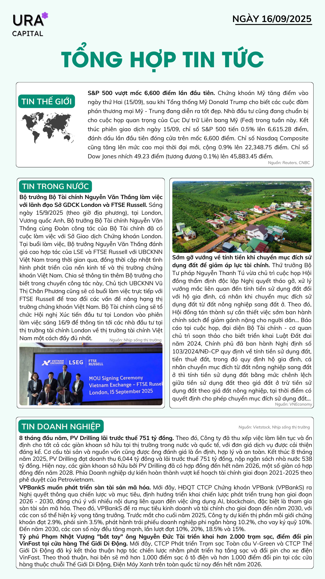 Tổng hợp tin tức 16/09/2025 Thứ Ba, 16/09/2025 uracapital Chia sẻ bài viết: Menu Trang chủ Tin tức Báo cáo & Phân tích Báo cáo Phân tích Dịch vụ Tư vấn đầu tư Đào tạo kiến thức đầu tư Quản lý danh mục đầu tư Tư vấn kế hoạch tài chính Kiến thức đầu tư Kiến thức cơ bản Kiến thức nâng cao Phân tích kỹ thuật Phân tích kỹ thuật Phân tích cơ bản Hỗ trợ Hướng dẫn giao dịch Liên hệ Về Ura Capital Tin tức nổi bật