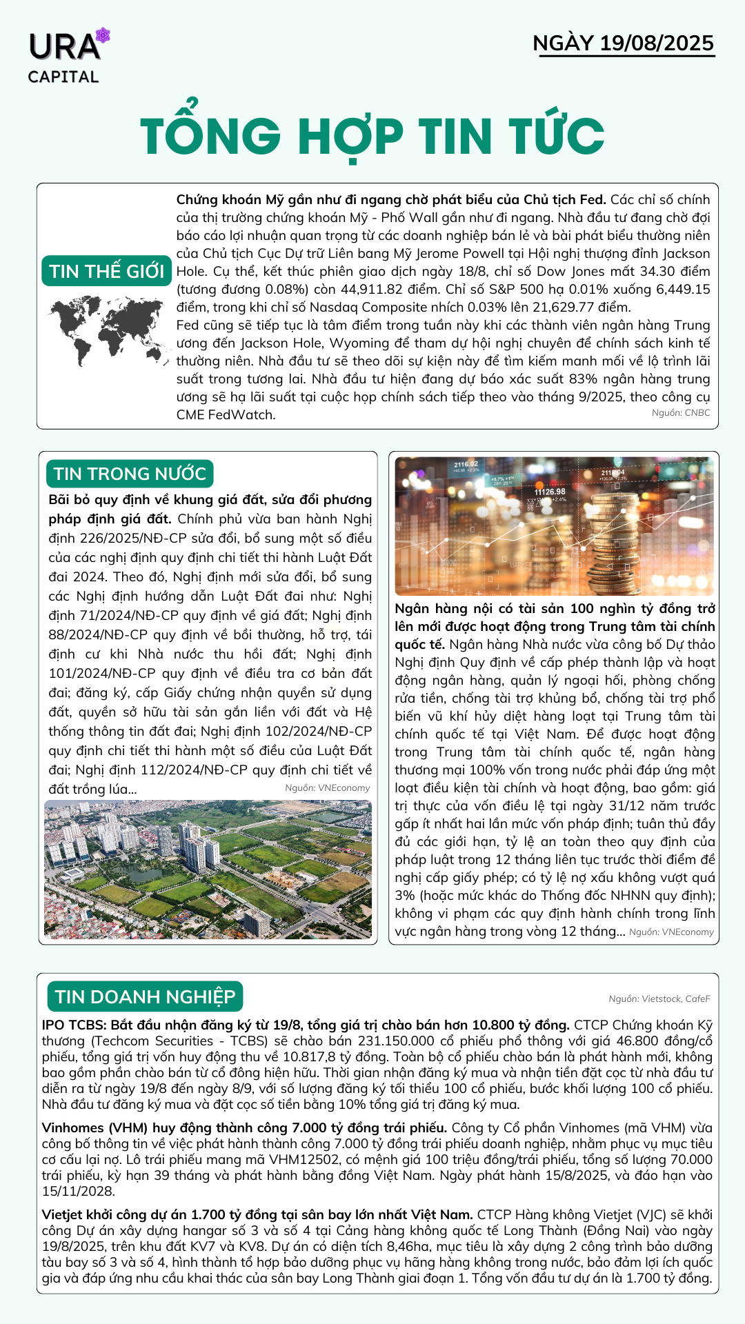 Tổng hợp tin tức 19/08/2025 Thứ Ba, 19/08/2025 uracapital Chia sẻ bài viết: Menu Trang chủ Tin tức Báo cáo & Phân tích Báo cáo Phân tích Dịch vụ Tư vấn đầu tư Đào tạo kiến thức đầu tư Quản lý danh mục đầu tư Tư vấn kế hoạch tài chính Kiến thức đầu tư Kiến thức cơ bản Kiến thức nâng cao Phân tích kỹ thuật Phân tích kỹ thuật Phân tích cơ bản Hỗ trợ Hướng dẫn giao dịch Liên hệ Về Ura Capital Tin tức nổi bật