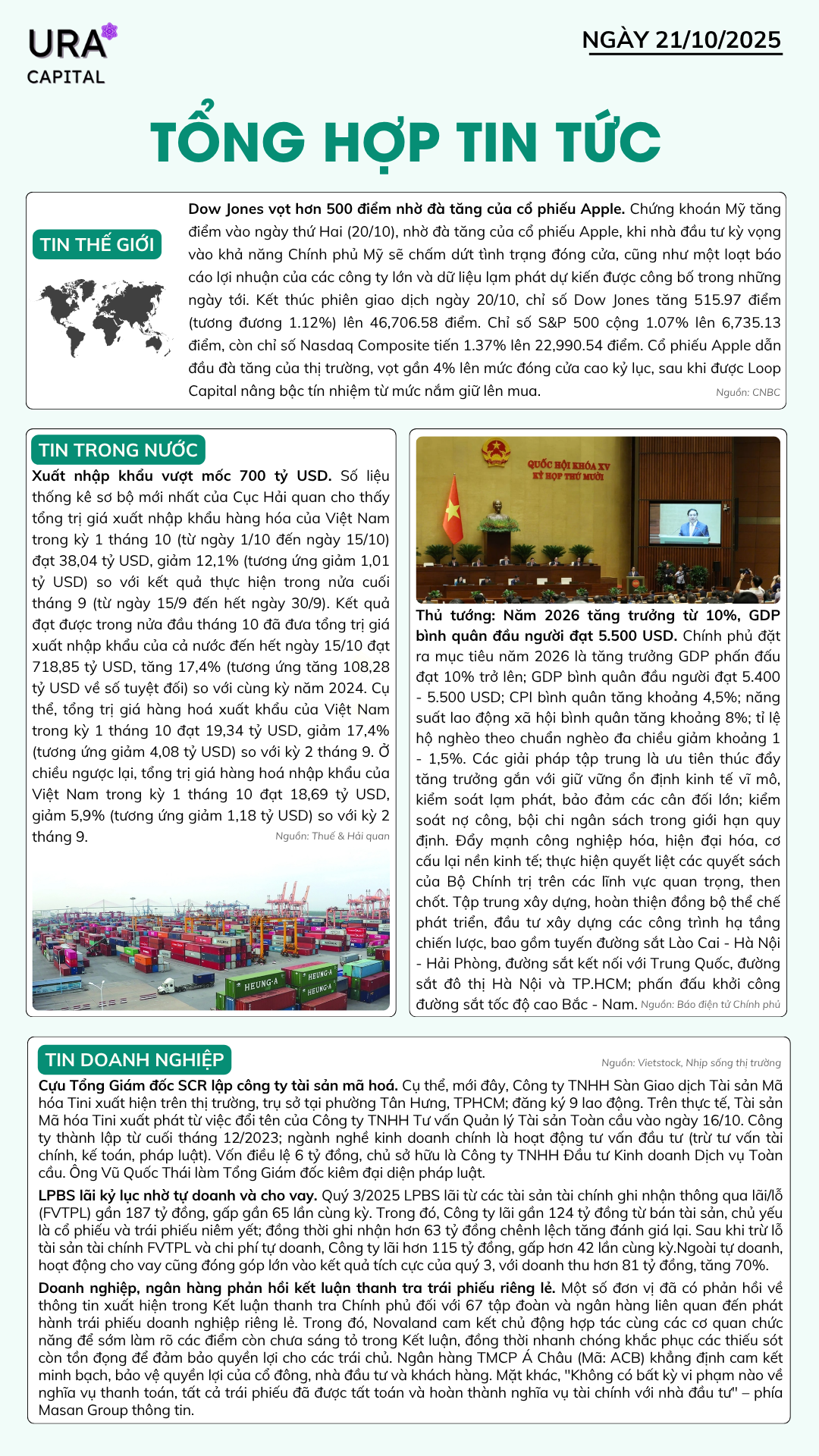 Tổng hợp tin tức 21/10/2025 Thứ Ba, 21/10/2025 uracapital Chia sẻ bài viết: Menu Trang chủ Tin tức Báo cáo & Phân tích Báo cáo Phân tích Dịch vụ Tư vấn đầu tư Đào tạo kiến thức đầu tư Quản lý danh mục đầu tư Tư vấn kế hoạch tài chính Kiến thức đầu tư Kiến thức cơ bản Kiến thức nâng cao Phân tích kỹ thuật Phân tích kỹ thuật Phân tích cơ bản Hỗ trợ Hướng dẫn giao dịch Liên hệ Về Ura Capital Tin tức nổi bật