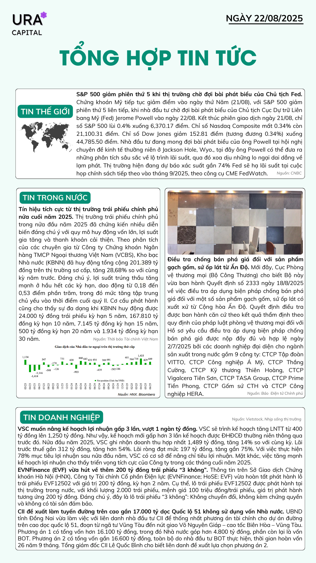 Tổng hợp tin tức 22/08/2025 Thứ Sáu, 22/08/2025 uracapital Chia sẻ bài viết: Menu Trang chủ Tin tức Báo cáo & Phân tích Báo cáo Phân tích Dịch vụ Tư vấn đầu tư Đào tạo kiến thức đầu tư Quản lý danh mục đầu tư Tư vấn kế hoạch tài chính Kiến thức đầu tư Kiến thức cơ bản Kiến thức nâng cao Phân tích kỹ thuật Phân tích kỹ thuật Phân tích cơ bản Hỗ trợ Hướng dẫn giao dịch Liên hệ Về Ura Capital Tin tức nổi bật