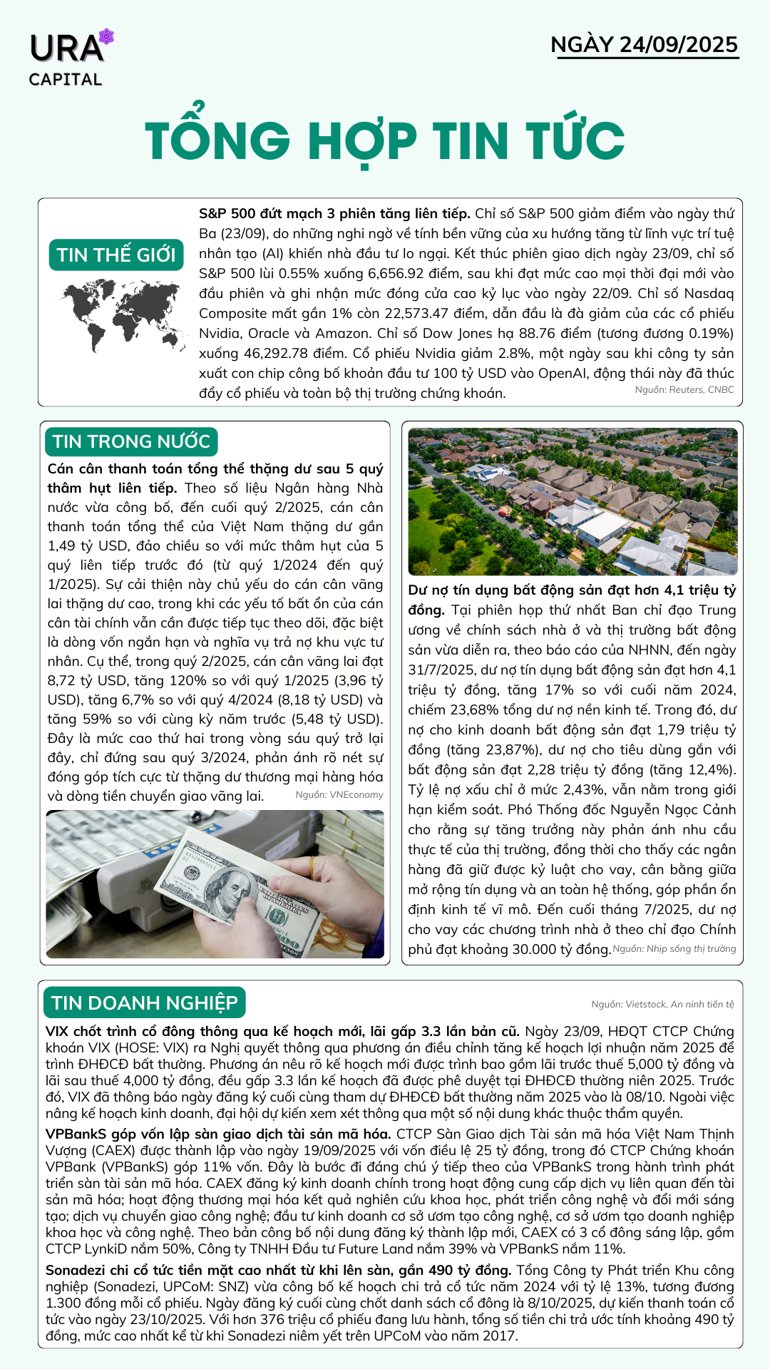 Tổng hợp tin tức 24/09/2025 Thứ Tư, 24/09/2025 uracapital Chia sẻ bài viết: Menu Trang chủ Tin tức Báo cáo & Phân tích Báo cáo Phân tích Dịch vụ Tư vấn đầu tư Đào tạo kiến thức đầu tư Quản lý danh mục đầu tư Tư vấn kế hoạch tài chính Kiến thức đầu tư Kiến thức cơ bản Kiến thức nâng cao Phân tích kỹ thuật Phân tích kỹ thuật Phân tích cơ bản Hỗ trợ Hướng dẫn giao dịch Liên hệ Về Ura Capital Tin tức nổi bật