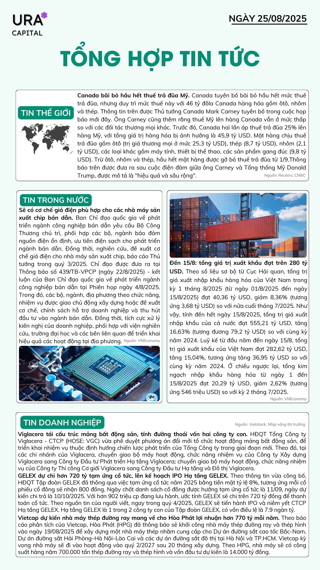 Tổng hợp tin tức 25/08/2025 Thứ Hai, 25/08/2025 uracapital Chia sẻ bài viết: Menu Trang chủ Tin tức Báo cáo & Phân tích Báo cáo Phân tích Dịch vụ Tư vấn đầu tư Đào tạo kiến thức đầu tư Quản lý danh mục đầu tư Tư vấn kế hoạch tài chính Kiến thức đầu tư Kiến thức cơ bản Kiến thức nâng cao Phân tích kỹ thuật Phân tích kỹ thuật Phân tích cơ bản Hỗ trợ Hướng dẫn giao dịch Liên hệ Về Ura Capital Tin tức nổi bật