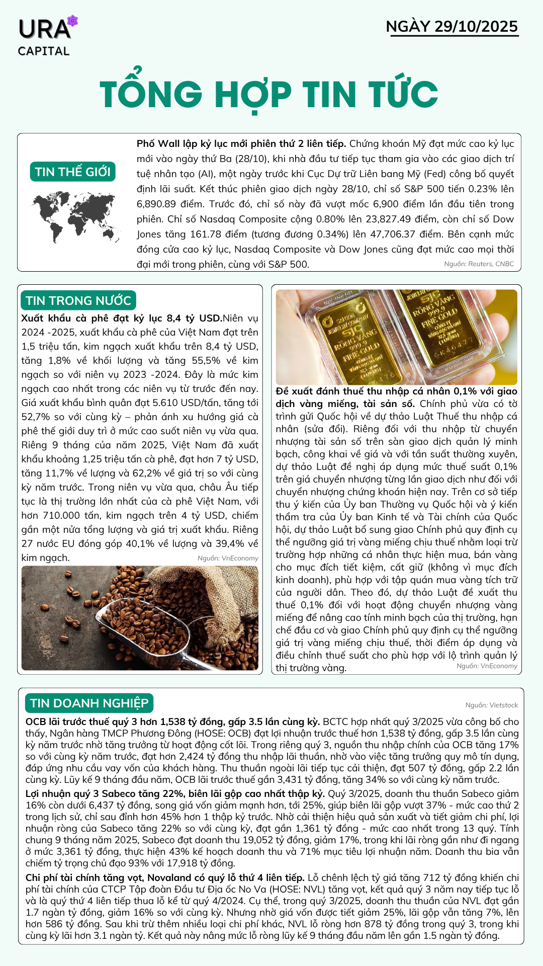 Tổng hợp tin tức 29/10/2025 Thứ Tư, 29/10/2025 uracapital Chia sẻ bài viết: Menu Trang chủ Tin tức Báo cáo & Phân tích Báo cáo Phân tích Dịch vụ Tư vấn đầu tư Đào tạo kiến thức đầu tư Quản lý danh mục đầu tư Tư vấn kế hoạch tài chính Kiến thức đầu tư Kiến thức cơ bản Kiến thức nâng cao Phân tích kỹ thuật Phân tích kỹ thuật Phân tích cơ bản Hỗ trợ Hướng dẫn giao dịch Liên hệ Về Ura Capital Tin tức nổi bật