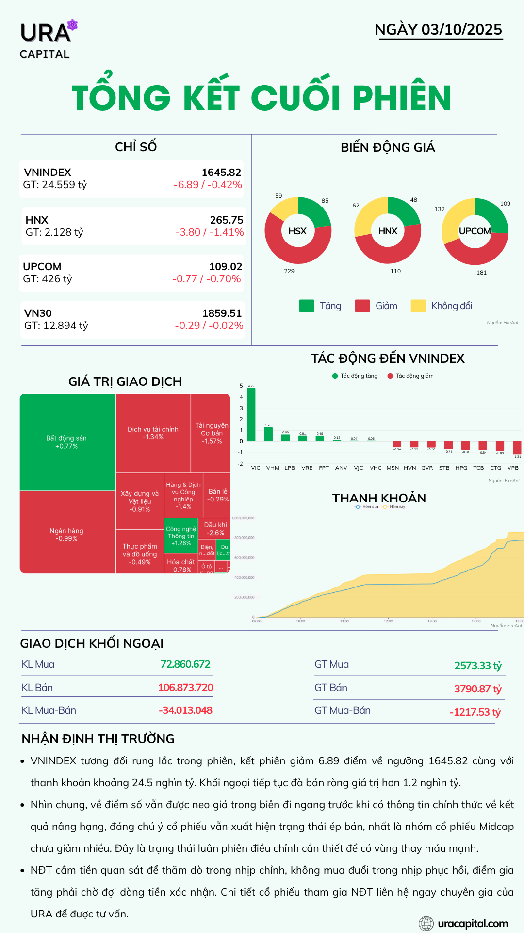 Tổng kết cuối phiên 03/10/2025 Thứ Sáu, 03/10/2025 uracapital Chia sẻ bài viết: Menu Trang chủ Tin tức Báo cáo & Phân tích Báo cáo Phân tích Dịch vụ Tư vấn đầu tư Đào tạo kiến thức đầu tư Quản lý danh mục đầu tư Tư vấn kế hoạch tài chính Kiến thức đầu tư Kiến thức cơ bản Kiến thức nâng cao Phân tích kỹ thuật Phân tích kỹ thuật Phân tích cơ bản Hỗ trợ Hướng dẫn giao dịch Liên hệ Về Ura Capital Tin tức nổi bật