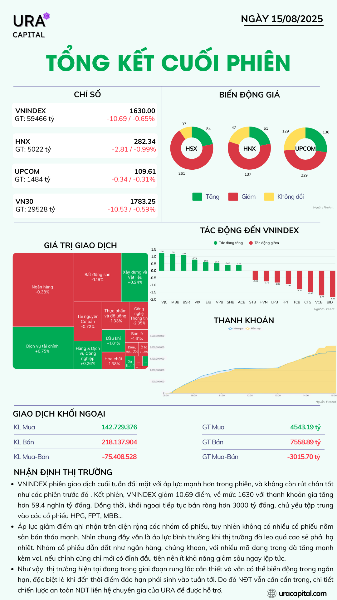 Tổng kết cuối phiên 15/08/2025 Thứ Sáu, 15/08/2025 uracapital Chia sẻ bài viết: Menu Trang chủ Tin tức Báo cáo & Phân tích Báo cáo Phân tích Dịch vụ Tư vấn đầu tư Đào tạo kiến thức đầu tư Quản lý danh mục đầu tư Tư vấn kế hoạch tài chính Kiến thức đầu tư Kiến thức cơ bản Kiến thức nâng cao Phân tích kỹ thuật Phân tích kỹ thuật Phân tích cơ bản Hỗ trợ Hướng dẫn giao dịch Liên hệ Về Ura Capital Tin tức nổi bật