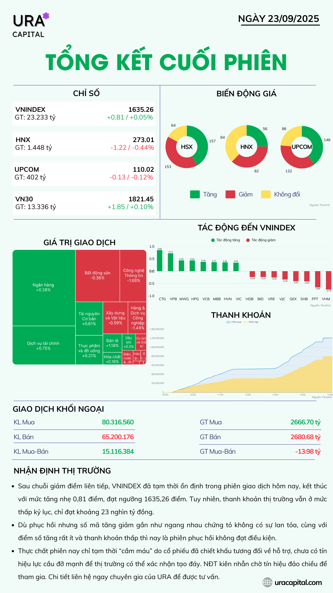 Tổng kết cuối phiên 23/09/2025 Thứ Ba, 23/09/2025 uracapital Chia sẻ bài viết: Menu Trang chủ Tin tức Báo cáo & Phân tích Báo cáo Phân tích Dịch vụ Tư vấn đầu tư Đào tạo kiến thức đầu tư Quản lý danh mục đầu tư Tư vấn kế hoạch tài chính Kiến thức đầu tư Kiến thức cơ bản Kiến thức nâng cao Phân tích kỹ thuật Phân tích kỹ thuật Phân tích cơ bản Hỗ trợ Hướng dẫn giao dịch Liên hệ Về Ura Capital Tin tức nổi bật