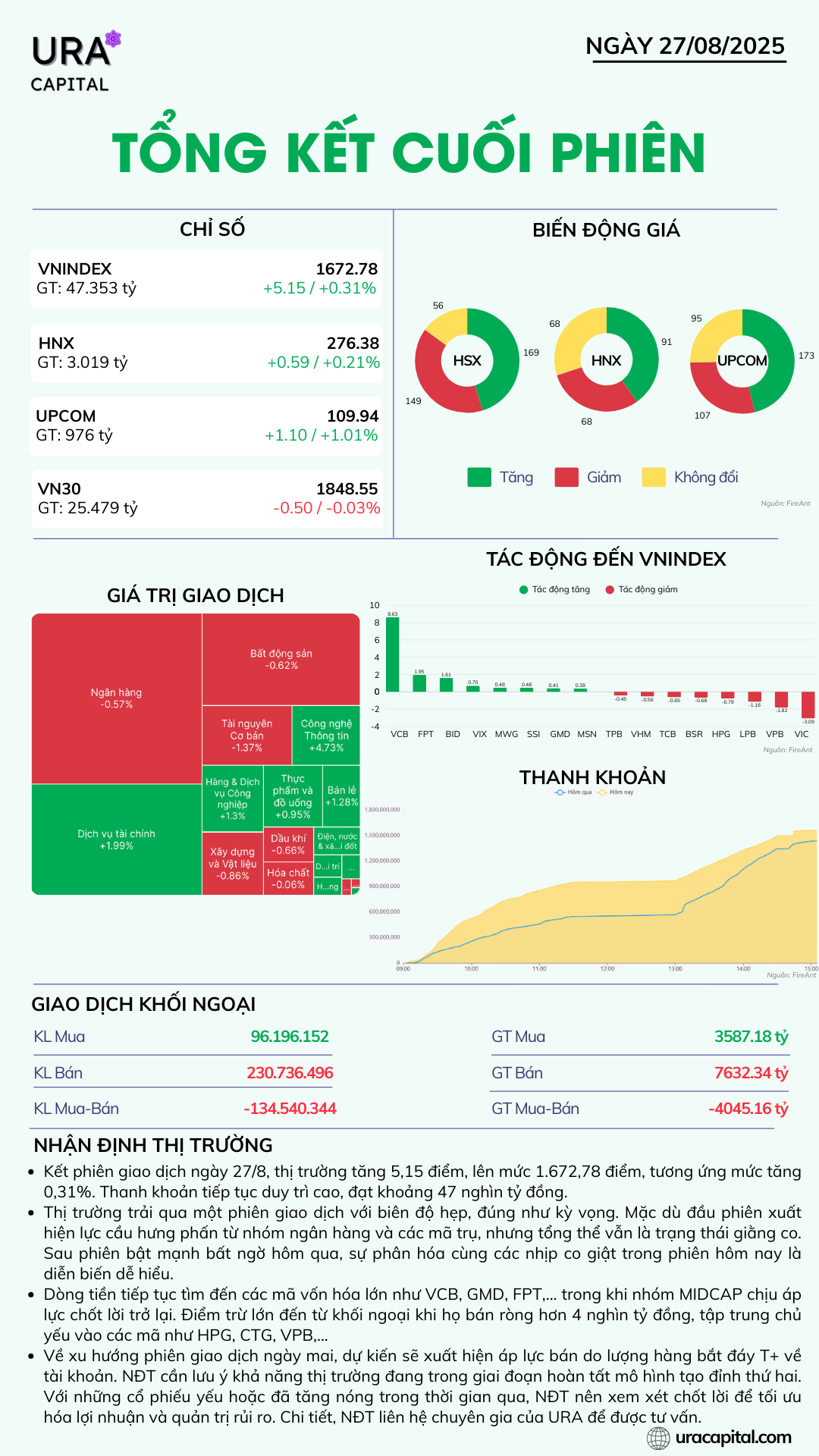 Tổng kết cuối phiên 27/08/2025 Thứ Tư, 27/08/2025 uracapital Chia sẻ bài viết: Menu Trang chủ Tin tức Báo cáo & Phân tích Báo cáo Phân tích Dịch vụ Tư vấn đầu tư Đào tạo kiến thức đầu tư Quản lý danh mục đầu tư Tư vấn kế hoạch tài chính Kiến thức đầu tư Kiến thức cơ bản Kiến thức nâng cao Phân tích kỹ thuật Phân tích kỹ thuật Phân tích cơ bản Hỗ trợ Hướng dẫn giao dịch Liên hệ Về Ura Capital Tin tức nổi bật