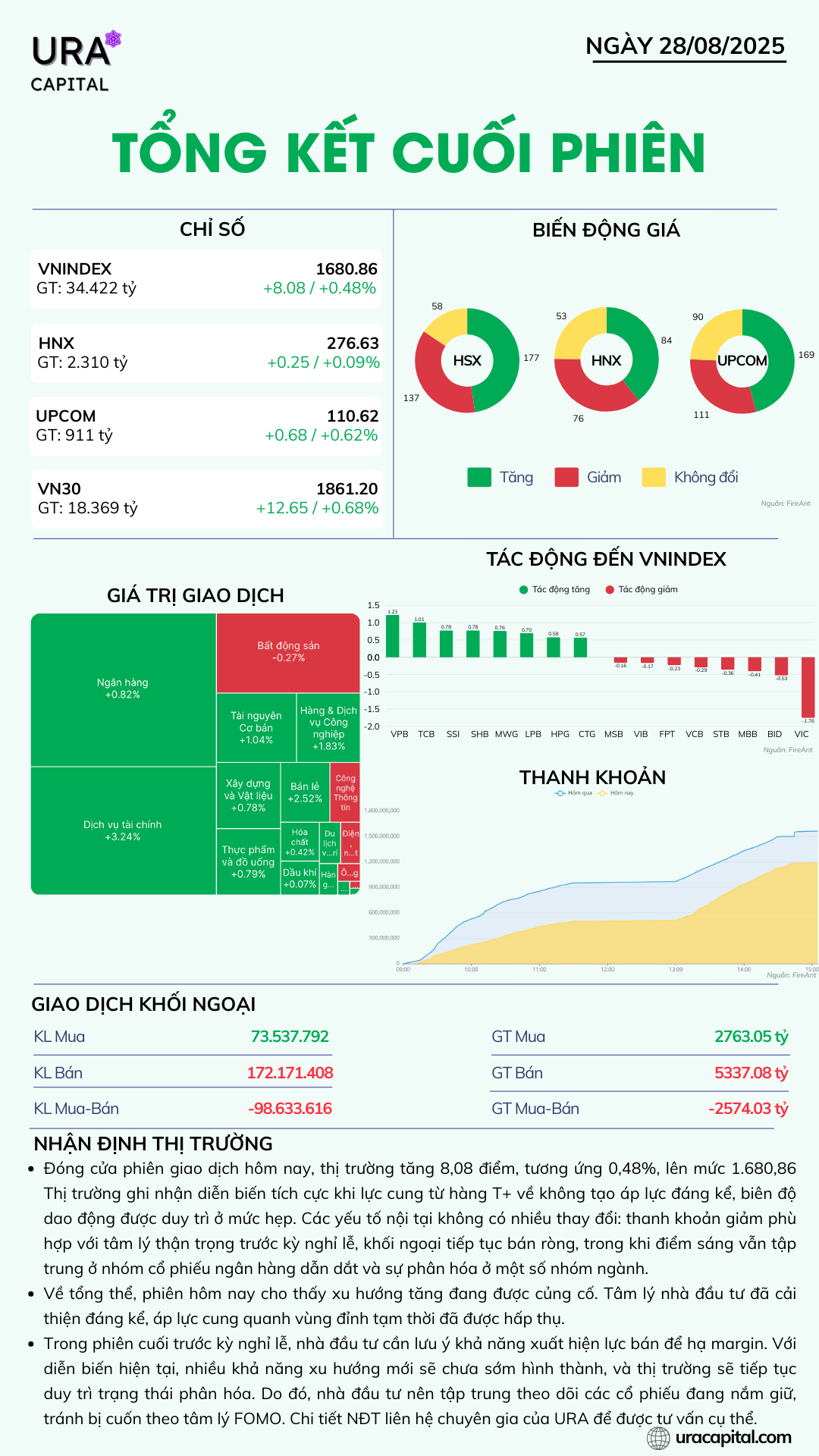 Tổng kết cuối phiên 28/08/2025 Thứ Năm, 28/08/2025 uracapital Chia sẻ bài viết: Menu Trang chủ Tin tức Báo cáo & Phân tích Báo cáo Phân tích Dịch vụ Tư vấn đầu tư Đào tạo kiến thức đầu tư Quản lý danh mục đầu tư Tư vấn kế hoạch tài chính Kiến thức đầu tư Kiến thức cơ bản Kiến thức nâng cao Phân tích kỹ thuật Phân tích kỹ thuật Phân tích cơ bản Hỗ trợ Hướng dẫn giao dịch Liên hệ Về Ura Capital Tin tức nổi bật